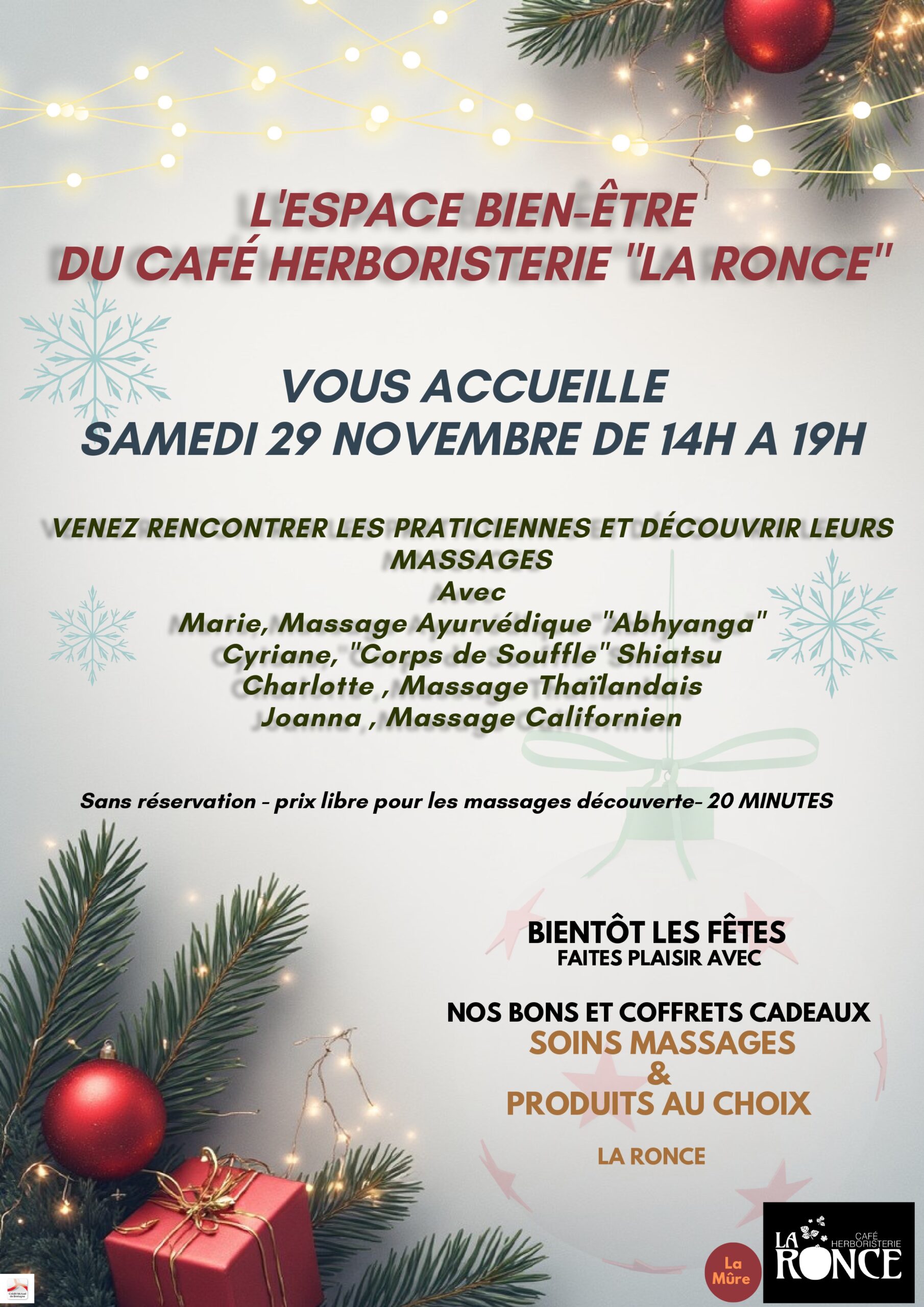 Samedi 29 Novembre de 14h à 19h – L’espace bien-être de la Ronce vous accueille !